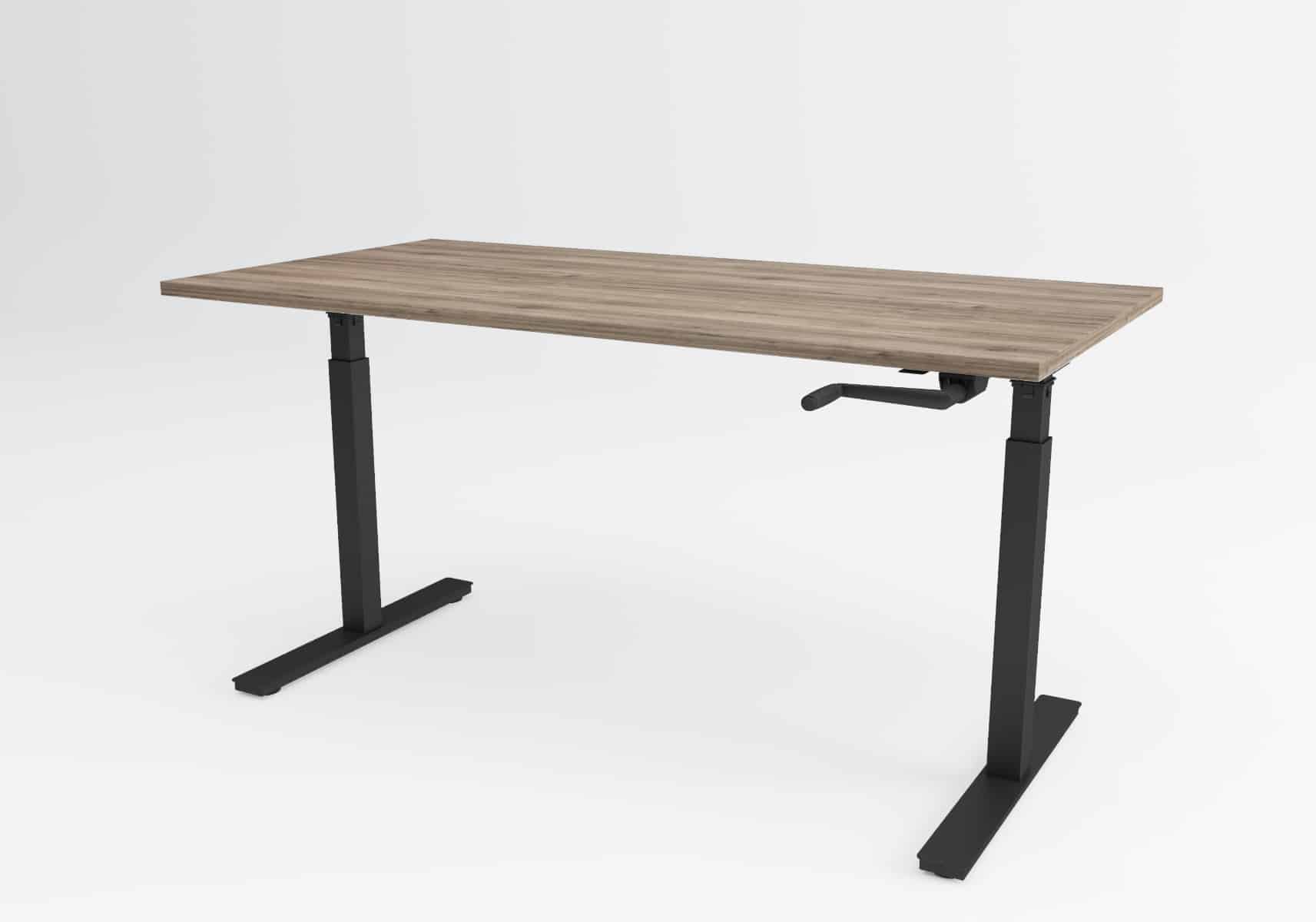 Ročno nastavljiva miza Ergolux Basic izstopa po visoki hitrosti nastavljanja z obračanjem ročice. V primerjavi s standardnim okvirjem z ročajem je hitrost nastavljanja za 10 mm na obrat hitrejša, kar omogoča lažjo in bolj udobno uporabo mize.