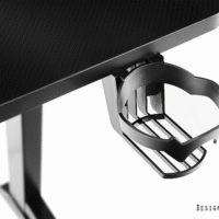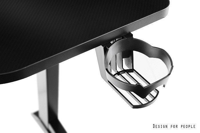 Miza opremljena s stojalom za skodelico in držalom za slušalke